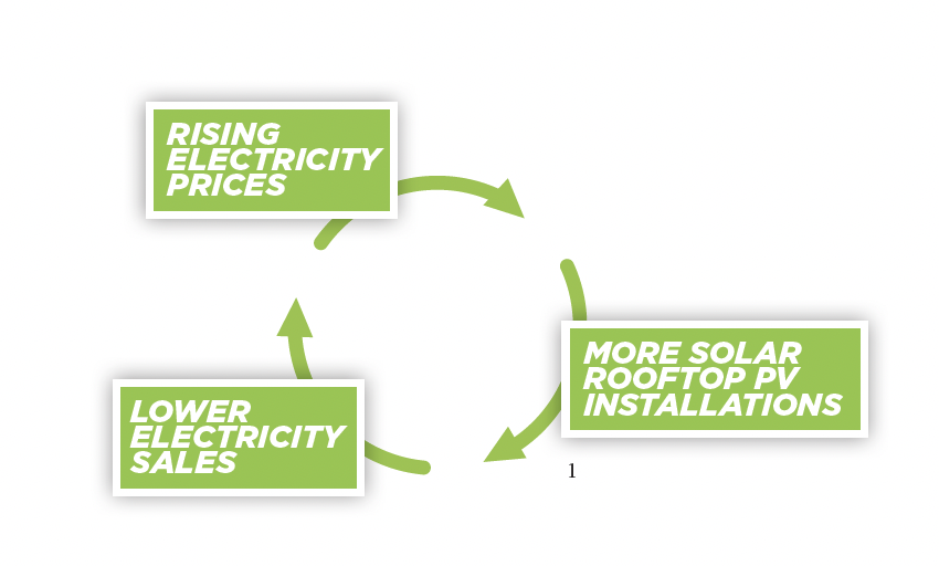 The alternative is a “hybrid” scenario where the house is still on the grid but still benefits from the backup power and energy savings generated by solar. In such scenarios, the house’s electrical system is split into “essentials” and “non-essentials” such that the essentials stay on when the power goes out and the non-essential switch off until the power returns. Electric geysers, stoves, ovens, pool pumps and the like are all examples of typical non-essentials. Where the right equipment is selected, the excess solar generated can also be shared with the non-essentials and the battery can be leveraged to derive savings by using battery power at night to minimise use of the grid. We believe it is important to acknowledge that there is a “snowball” growing and momentum in South Africa around the deployment of renewable or alternative energy sources. The feedback loop depicted below is a vicious cycle for Eskom who will lose out on electricity sales and be forced to push prices up as a result, and a virtuous cycle for residential solar users because their return on investment will shorten every time the electricity price is increased.